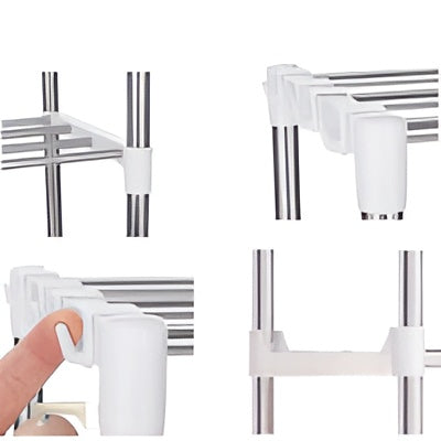 يشمل عدة خطافات لتعليق ملحقات المطبخ مثل الملاعق، مصافي الزيت، المناشف، والمزيد. توفر الخطافات الإضافية تخزينًا إضافيًا للأواني والأدوات، مما يعزز تنظيم المطبخ.