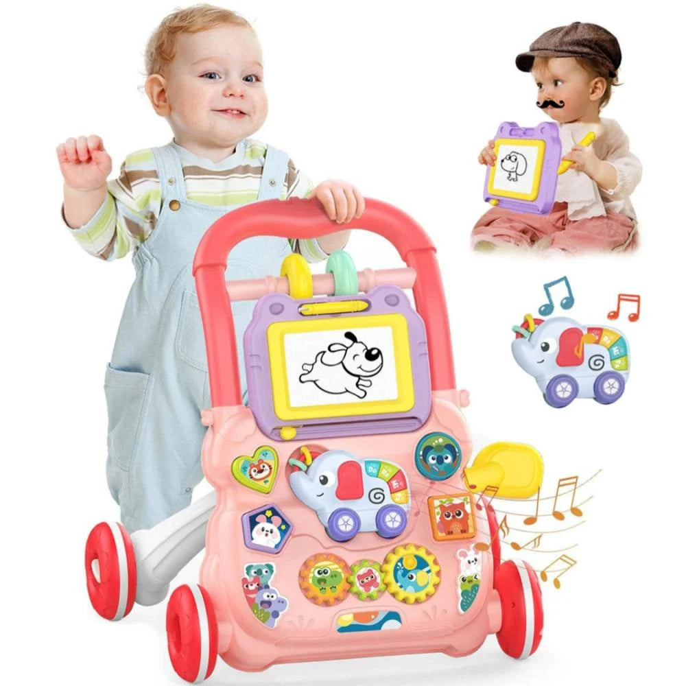 مشاية البيبي الموسيقية تجمع بين المتعة والتعليم في تصميم واحد ذكي، كما أنها مزودة بلوحة ألعاب تفاعلية بأزرار موسيقية وأضواء ملوّنة تشجّع الطفل على الحركة