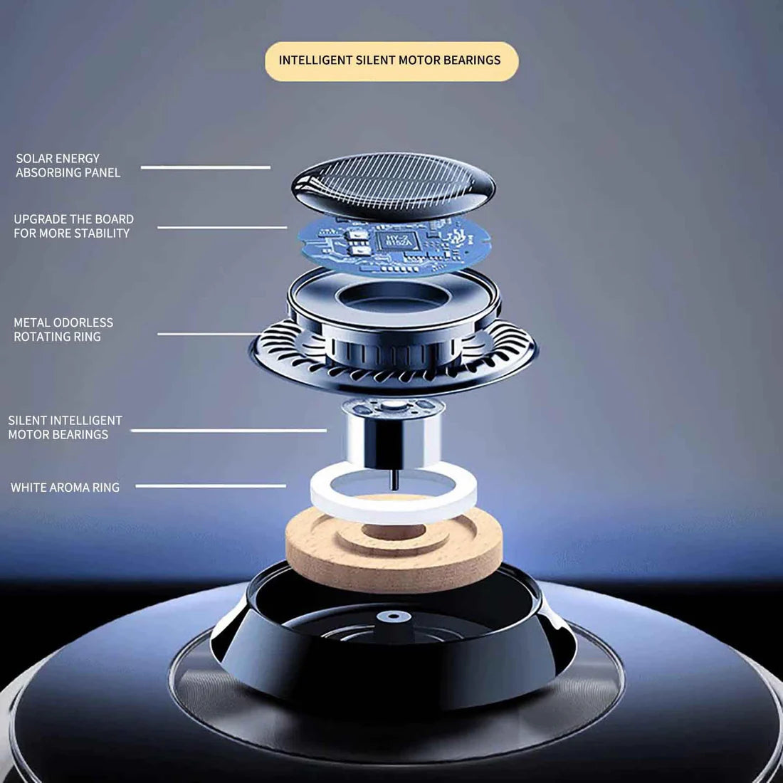 يدور تلقائيًا تحت أشعة الشمس لينشر الرائحة بالتساوي ويضيف لمسة جمالية عصرية داخل السيارة.