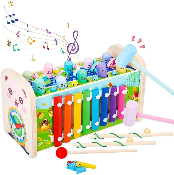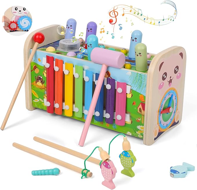 بالإضافة إلى لعبة المطرقة التفاعلية التي تقوّي حركة اليد، وساعة تعليمية تساعد الطفل على التعرف على الوقت. يجمع كل ذلك في قطعة واحدة تجمع بين المتعة والتعلم في آنٍ واحد.